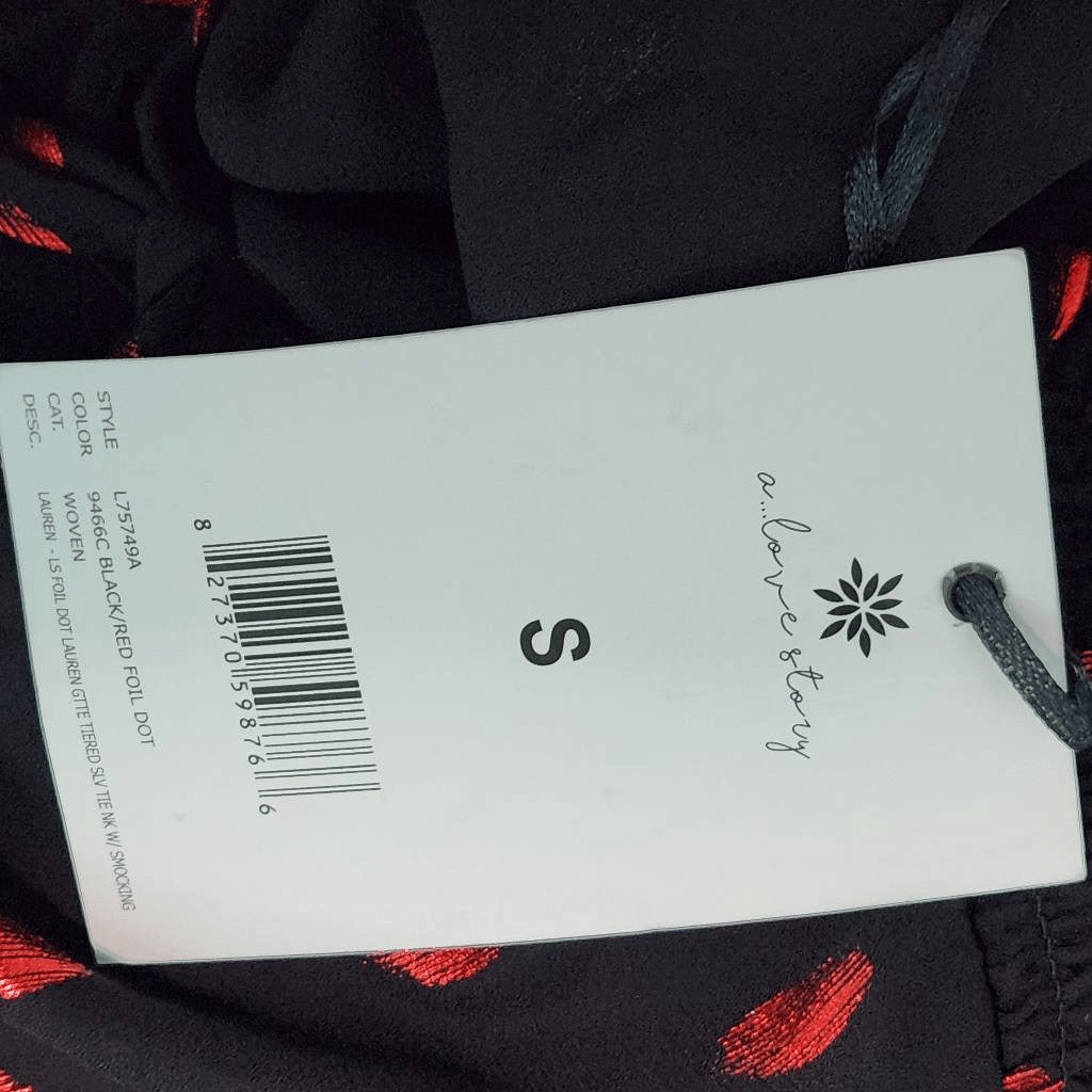 a love story Black and Red Blouse NWT Size Small Black and Ped Dot Print Top