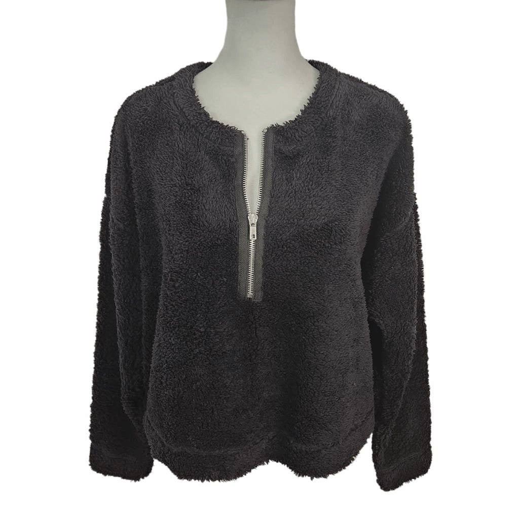 Abound Black Faux Fur Pullover NWT Size Medium Black Fleece Half-Zip Pullover