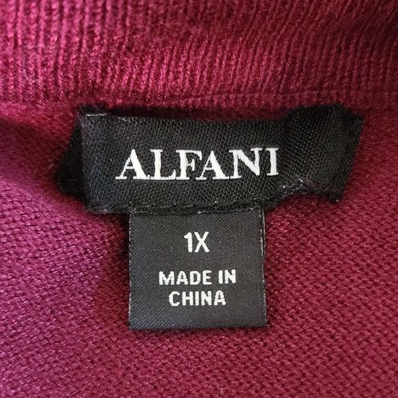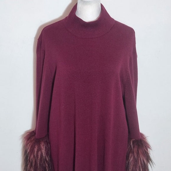 Alfani Burgundy Sweater with Faux Fur Cuffs Size 1X Oxblood Mock Neck Sweater