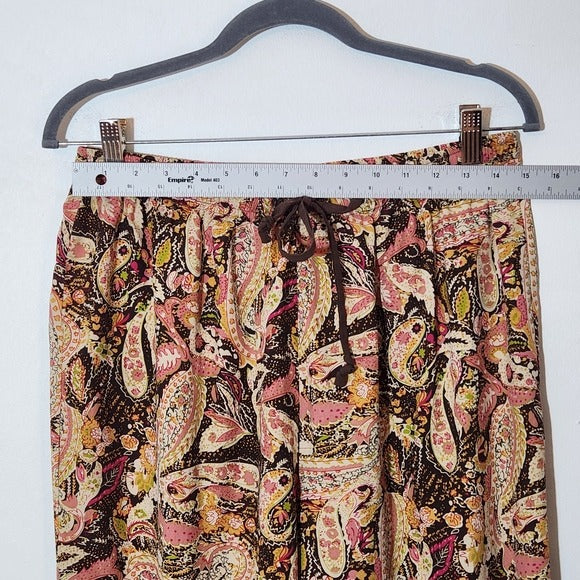 Anne Carson Brown and Pink Paisley Silk Wide-Leg Pants Size Large