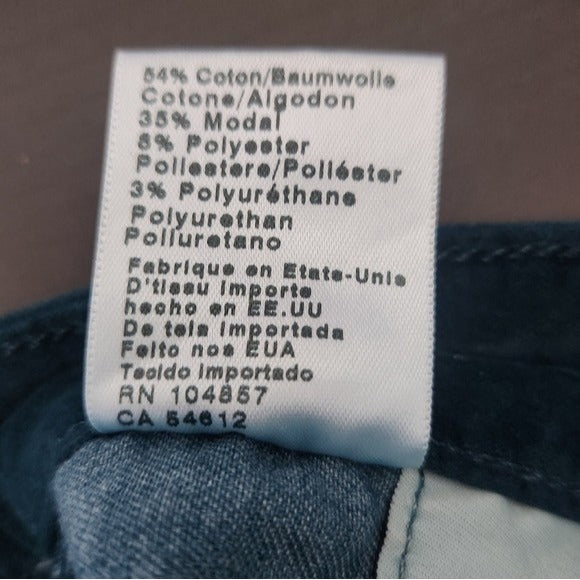 Adriano Goldschmied Anthropologie teal blue velvet skinny pants with pockets in the front and the back and a soft fabric.