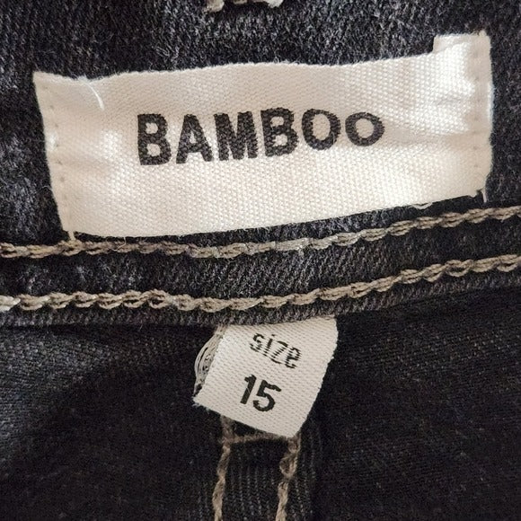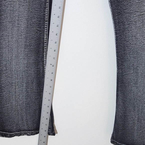 These Bamboo flare leg jeans bring a laid-back vibe with faded blackish gray tones and subtle distressed details that give a soft, lived-in look. Finished with a button and zipper closure, the relaxed flare silhouette is perfect for casual days, weekends, or pairing with your favorite sneakers or boots. Pre-loved and in excellent condition.