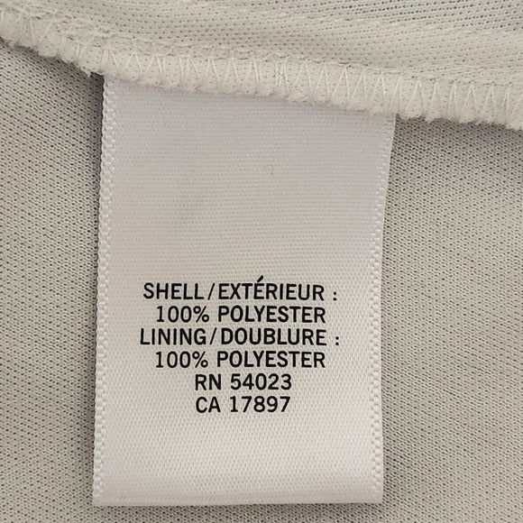This blouse features a chic zigzag stripe pattern in shades of gray, taupe, and cream with an elastic waist for a flattering fit. Designed with a sheer overlay and an attached tank for easy wear, it’s perfect for work, brunch, or casual outings. Pre-loved and in great condition.