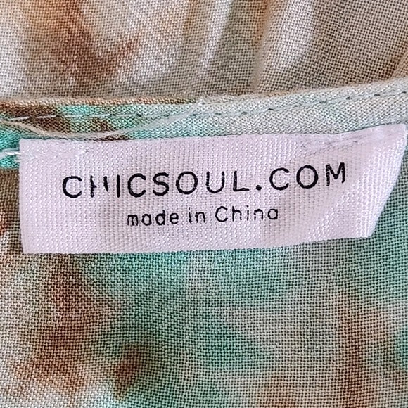 Chic Soul Green and Brown Tie-Dye Boho Blouse Size 2XL Green Tie-Dye Blouse