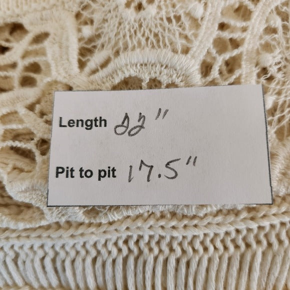 Chico's boho cream knit top with crochet accents and open styling. Size is a Chico's Size 0, which is a small 4/6 per their size chart.