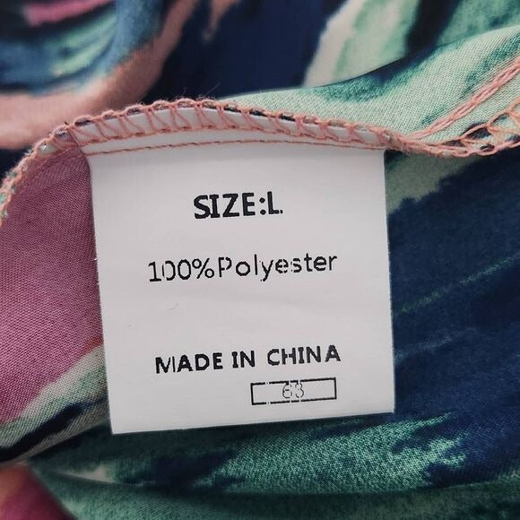 Colorful Abstract Print Boho Blouse with V-Neck and Full Sleeves Size Large