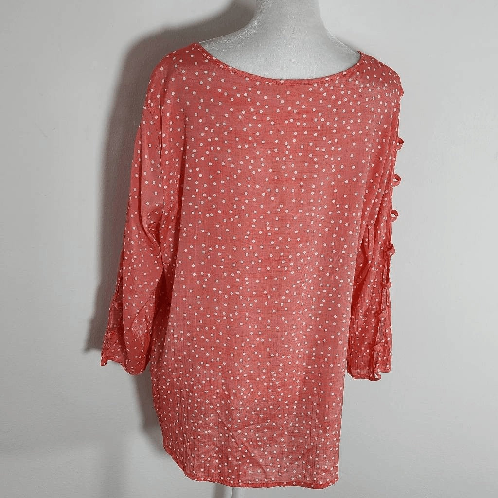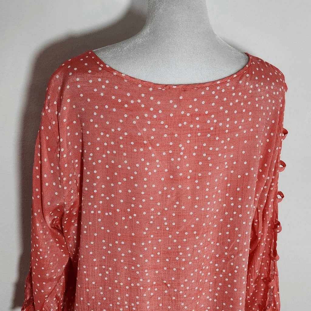 Como Blu Coral Pink Polka Dot Blouse with Cutout Detail Size Large Coral Top