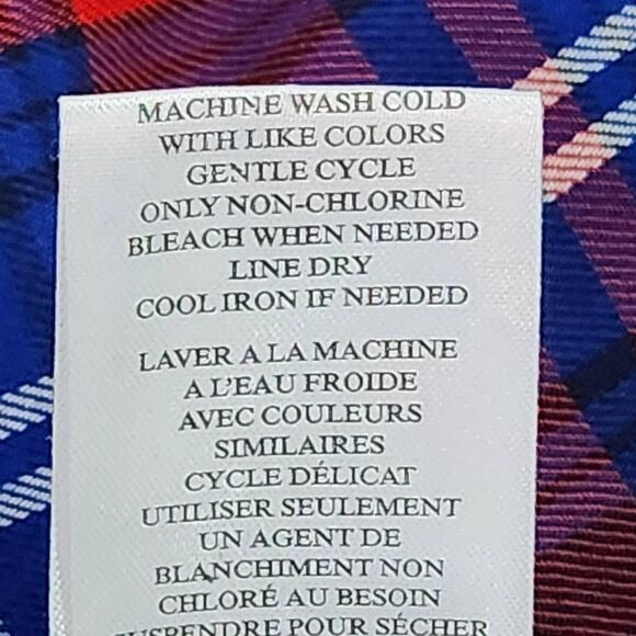 Como Vintage Navy and Red Plaid Button Down Shirt Size Large Preppy Plaid Shirt