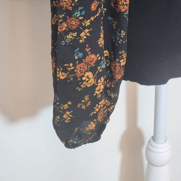 Daniel Rainn Black Knit Top With Sheer Floral Sleeves Size Small NWT