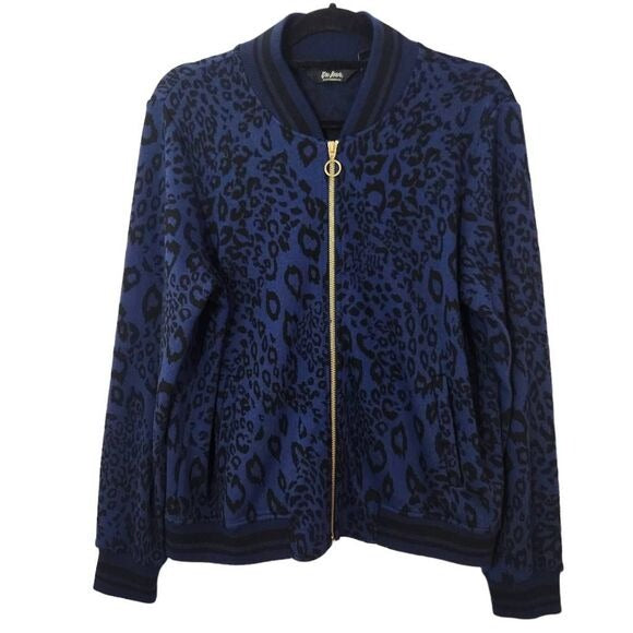Du Jour Blue Leopard Print Jacket Size Small Zip-Up Sweater Bomber Jacket