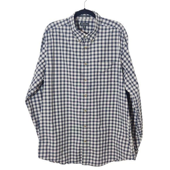 Eddie Bauer Men's Blue and Brown Check Button Down Shirt Size XL Tall