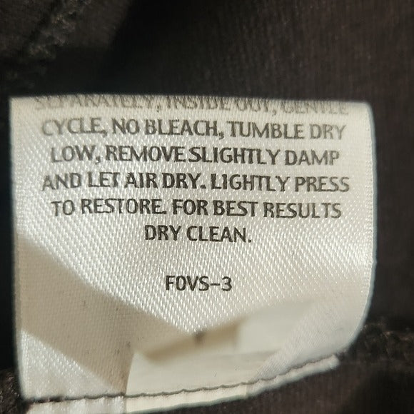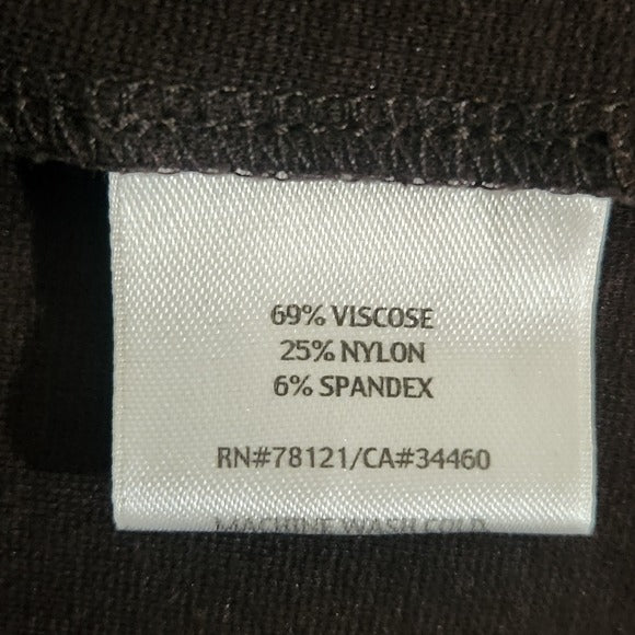 Eileen Fisher knee-length skirt with pull-on style, slit in the back, and a very dark brown color.