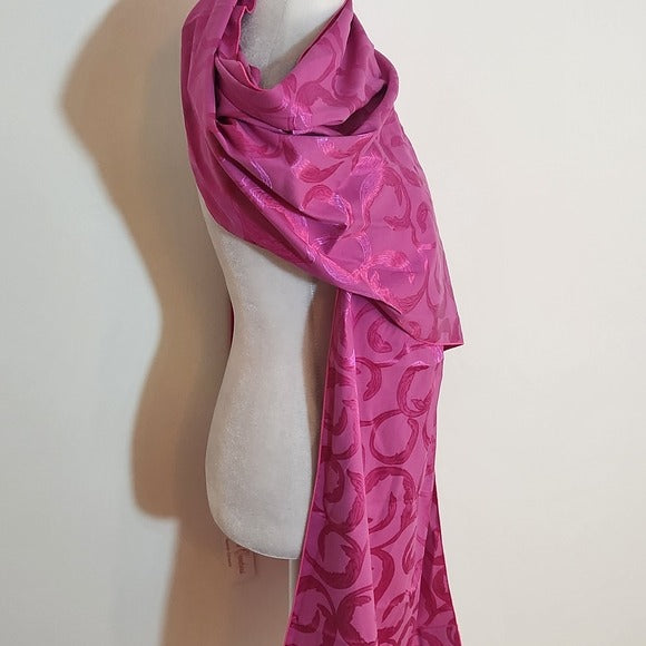 Vibrant pink wrap by Elohim Creations featuring pleated detail at the ends and a tonal pattern throughout. The fabric has a gentle sheen that catches the light beautifully and adds a polished touch without feeling flashy. Lightweight and elegant with plenty of length for styling over the shoulders or wrapping around the neck.