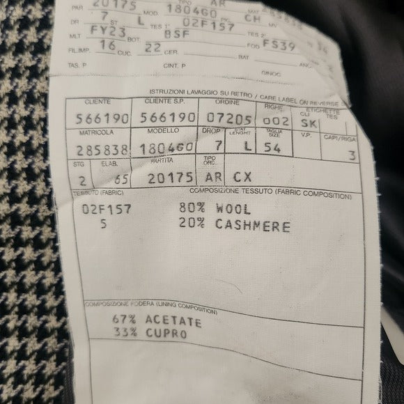Ermenegildo Zegna Men’s Blazer Size 54L Houndstooth Sport Coat