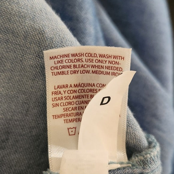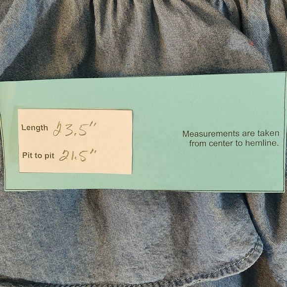 Faded Glory Blue Chambray Blouse with Ruffle Neckline Size XL 16-18