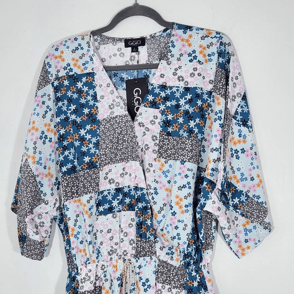 GiGio Blue and Pink Patchwork Boho Short Romper NWT Size Small GiGio Boho Romper