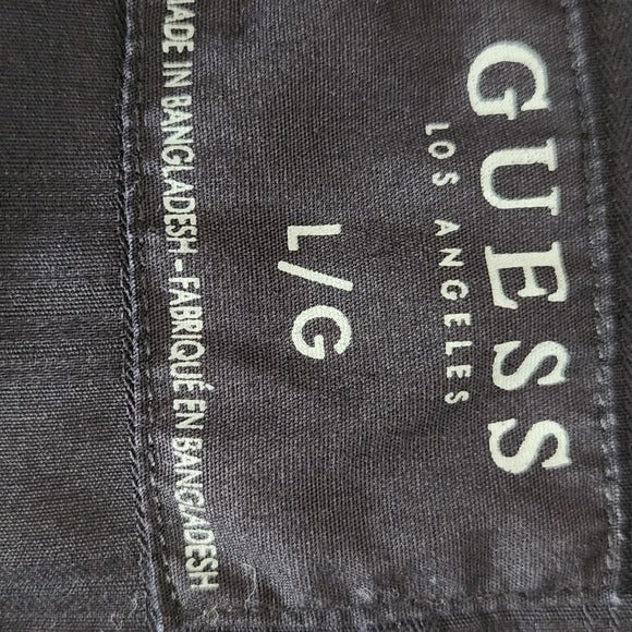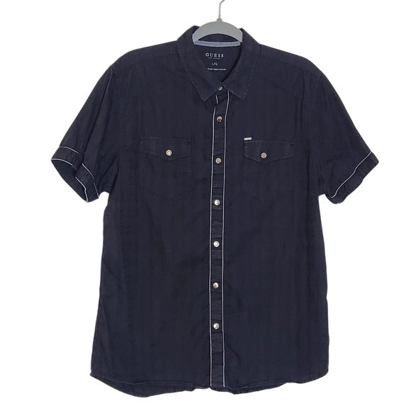 GUESS Men's Black Short Sleeve Shirt Size Large Snap-Front Black Shirt