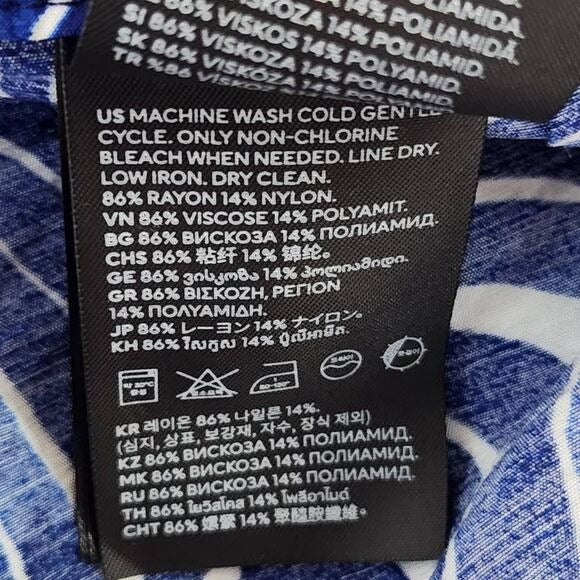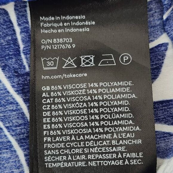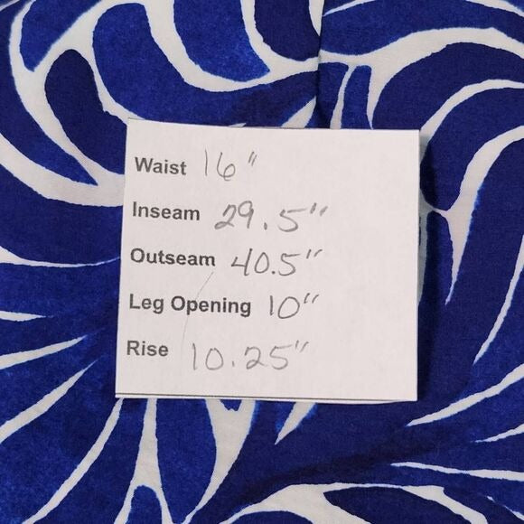 H&M Blue Print Wide Leg Pants Size 12 Blue and White Print Resortwear Pants