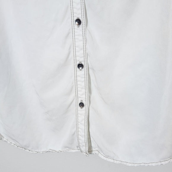 Halogen white button-up shirt with chest pockets and contrast stitching.