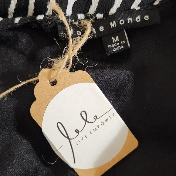 Haute Monde Black and White Striped Long Sleeve Romper NWOT Size Medium