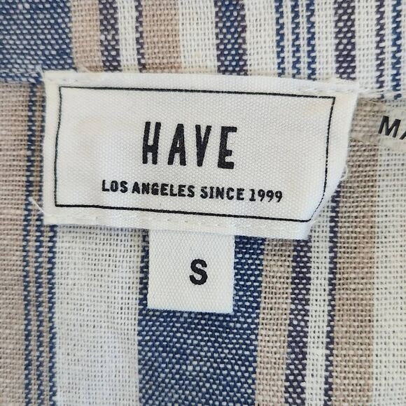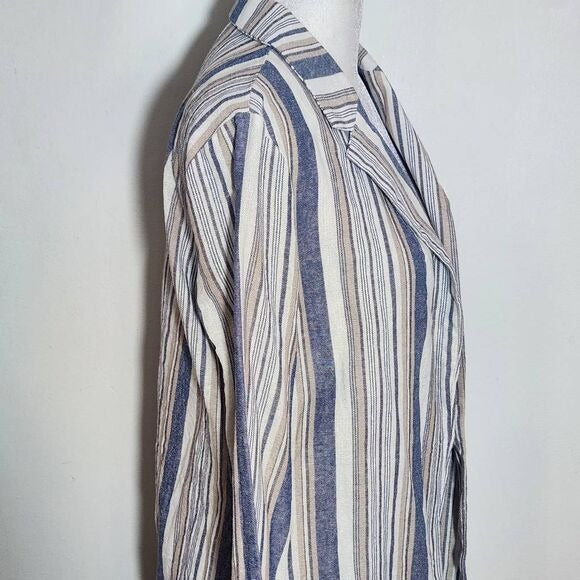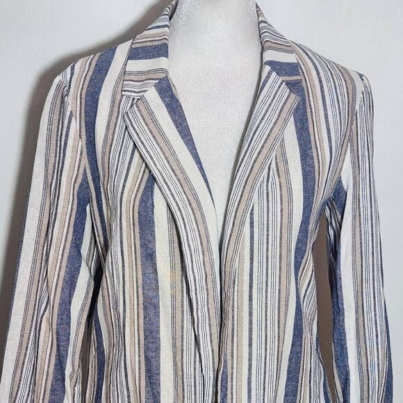 Have Blue and Tan Linen Blazer Size Small Women's Linen Stripe Open Blazer