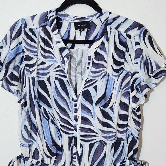 Heyson Blue and White Print Dress Size Large Blue Short Sleeve Dress