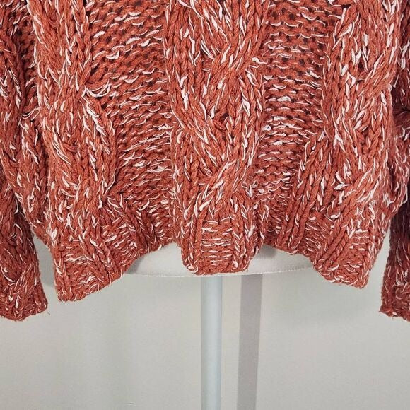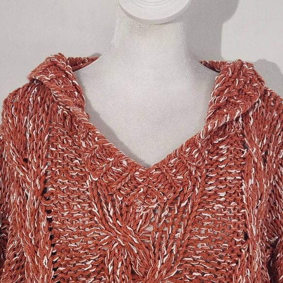 Hyfve Coral Red Oversized Chunky Knit Cropped Sweater Hoodie Size Small