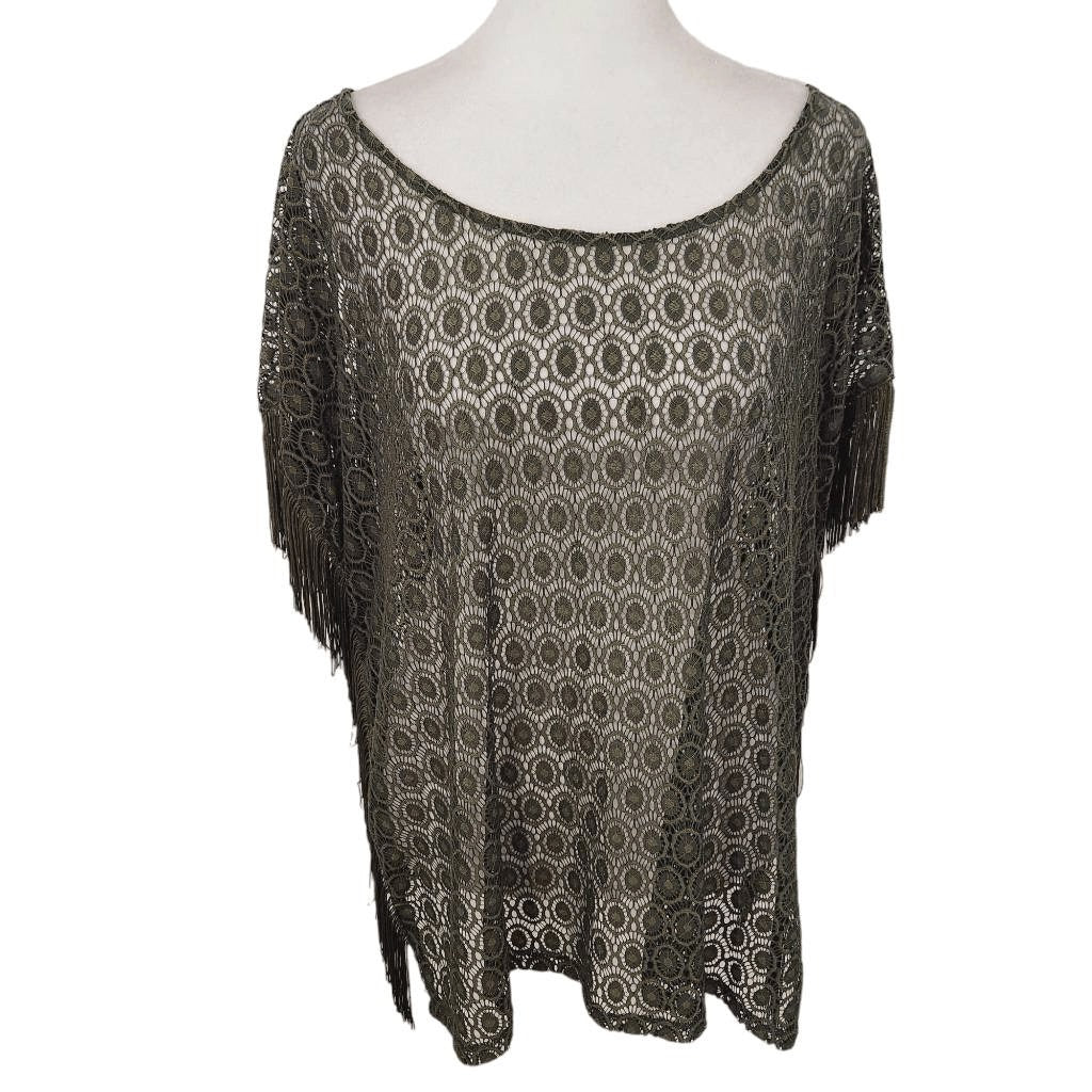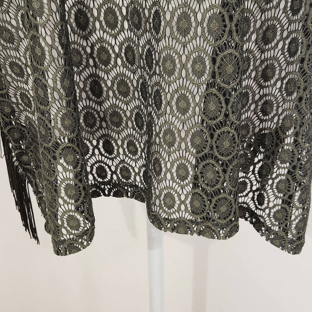 i Jeans by Buffalo dark green crochet poncho style top with fringe accent.