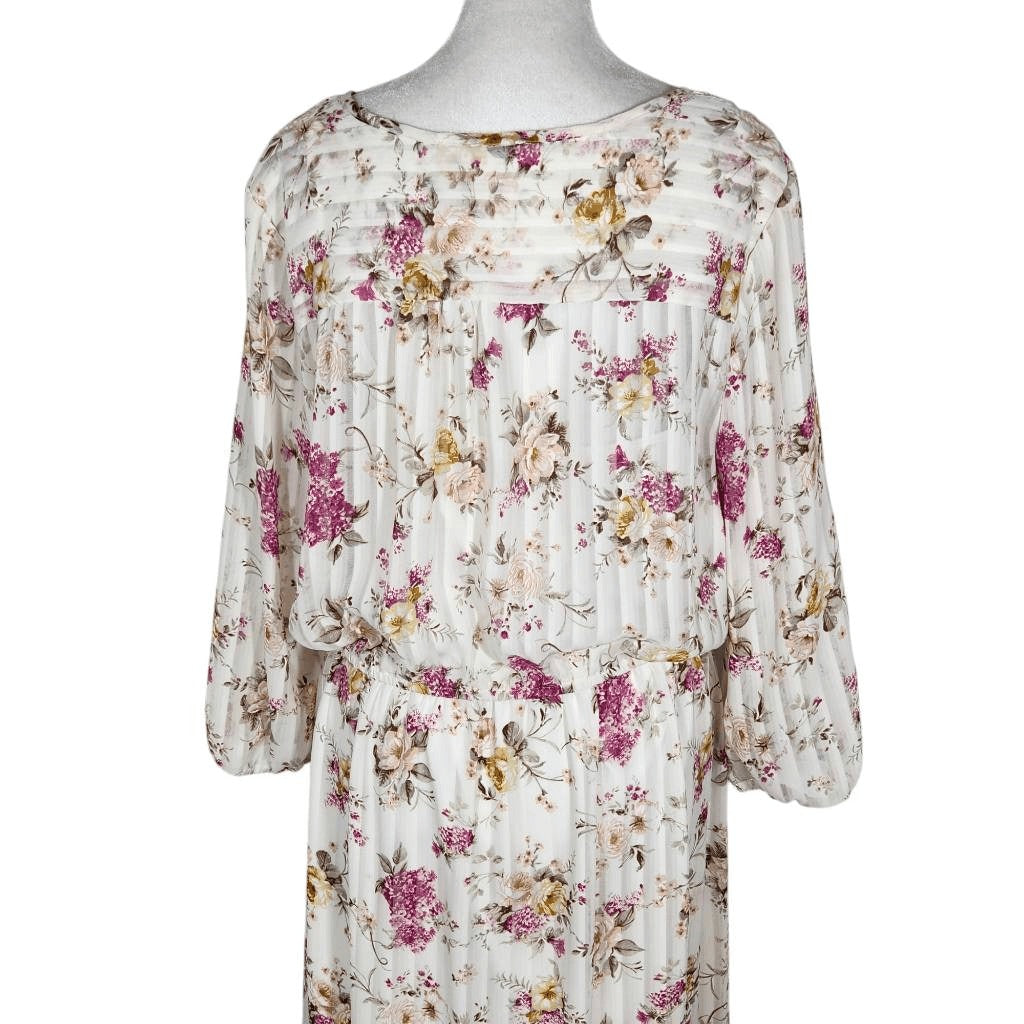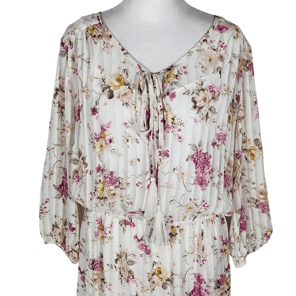 Indigo Rose White and Pink Floral Boho Midi Dress Size Large Wedding Guest Dress