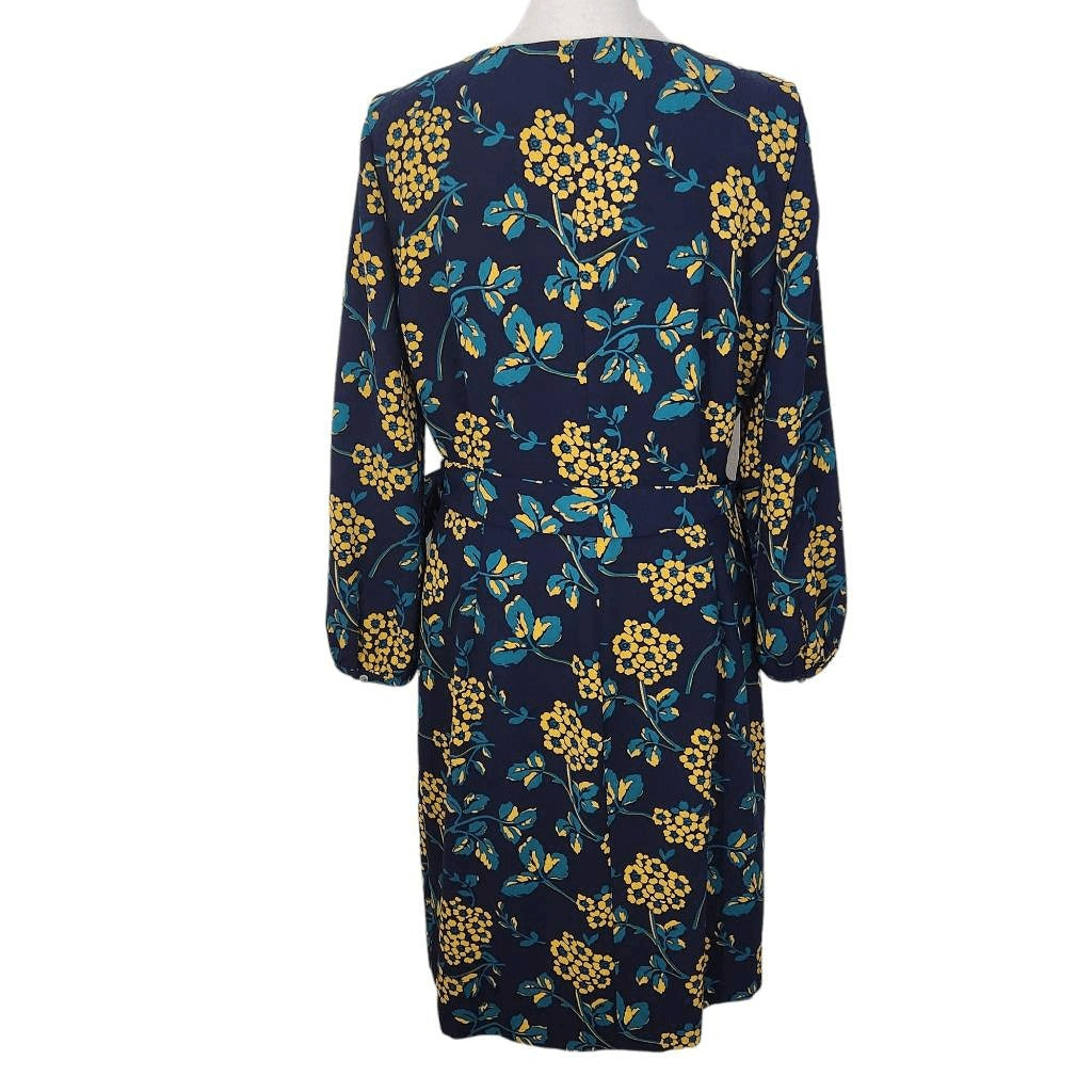 J. Crew Navy and Gold Floral Wrap Dress Size 4 Wedding Guest Dress
