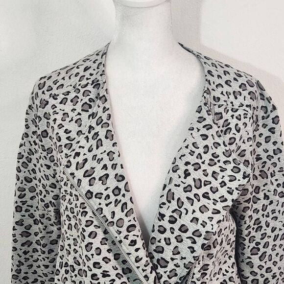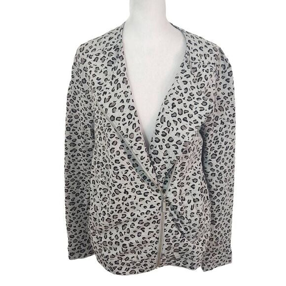 Joan Vass Gray Leopard Print Knit Moto Jacket Size Medium Gray Leopard Jacket