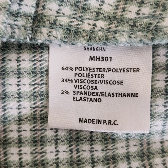 Brandy Melville John Galt plaid cropped button-up shirt with short sleeves and a green and white pattern. The fabric is very soft and has an almost flannel-like feel.