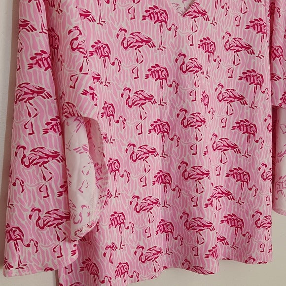 Jude Connally Pink Flamingo Print Blouse Size Small