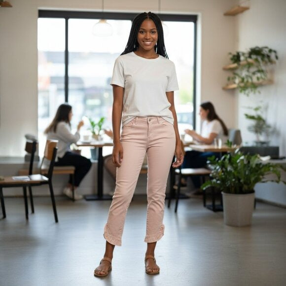 Kate & Mallory Pink Cropped Jeans with Ruffle Hem Size 8