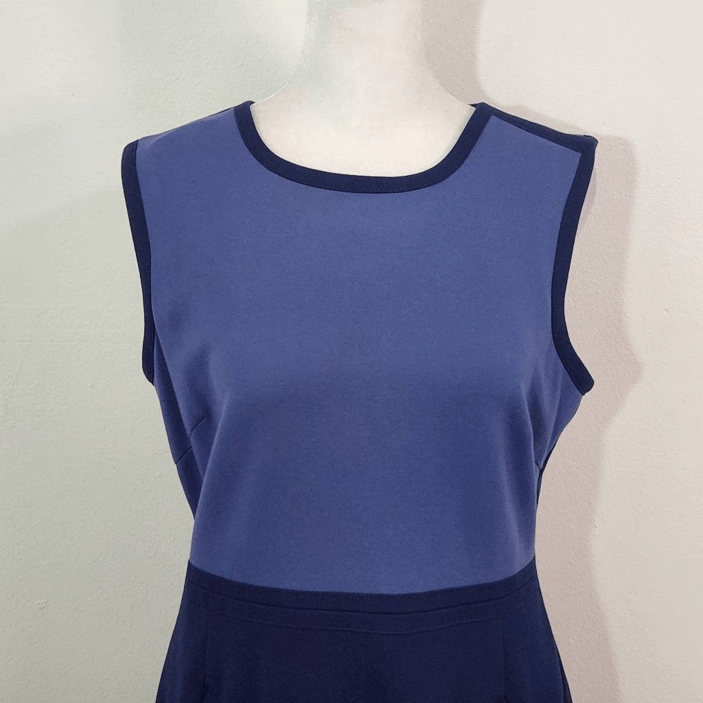 Lands' End dark and light blue dress. Sleeveless dress features back zipper/hook and eye closure, pockets, and lining on the top front. Falls at or above the knee. Great condition!