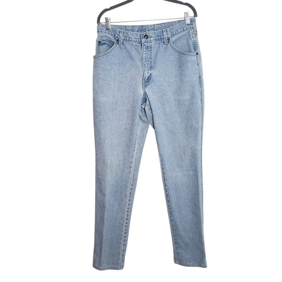 Classic vintage Lands’ End men’s jeans in a light wash with a clean, timeless look. These jeans feature a slim fit through the leg with a higher rise, giving them that true vintage silhouette that feels structured and flattering. Durable denim with an easy everyday feel, perfect for casual outfits or dressing up with a button down.