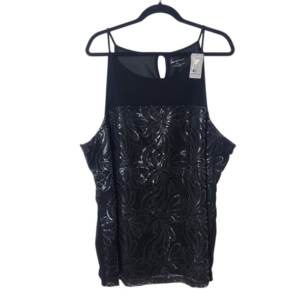 Lane Bryant black sequin tank features an embellished front and a keyhole cutout at the back neckline.