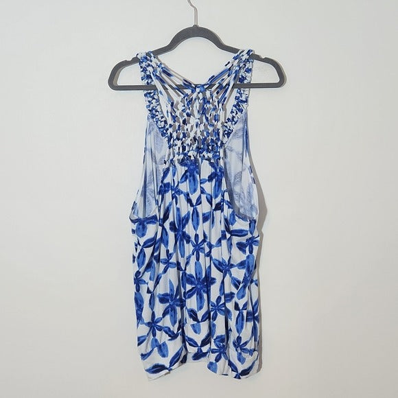 Lane Bryant Blue Floral Sleeveless Top Size 26/28 Blue Shibori Print Tank