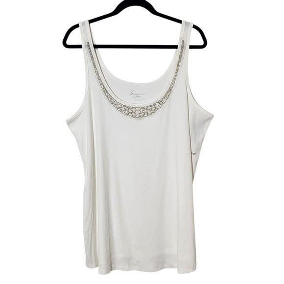 Lane Bryant White Embellished Tank Top Size 26/28 White Ribbed Knit Tank New