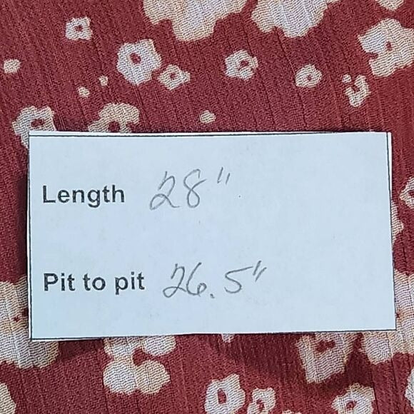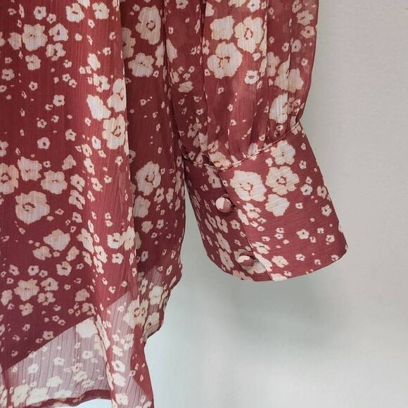 LC Lauren Conrad floral top in a rust rose color, originally called Rust Daisy. Flowy style with button-up accent and sheer full sleeves. Body is lined.