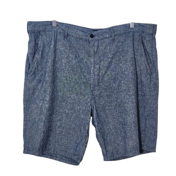 Levi's men's blue shorts feature a linen-cotton blend fabric with a textured look and button/zipper closure.