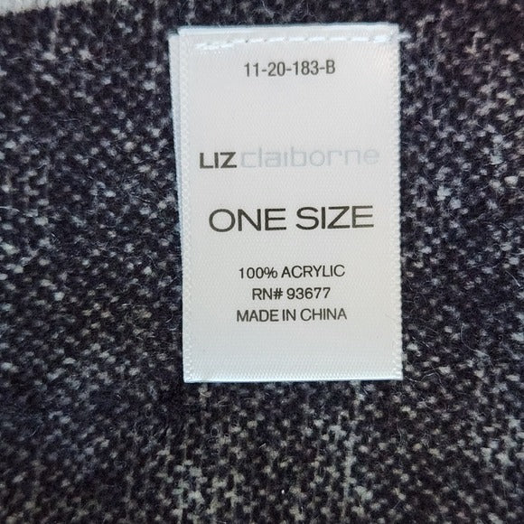 Liz Claiborne Floral Black and White Woven Scarf with Fringe One Size