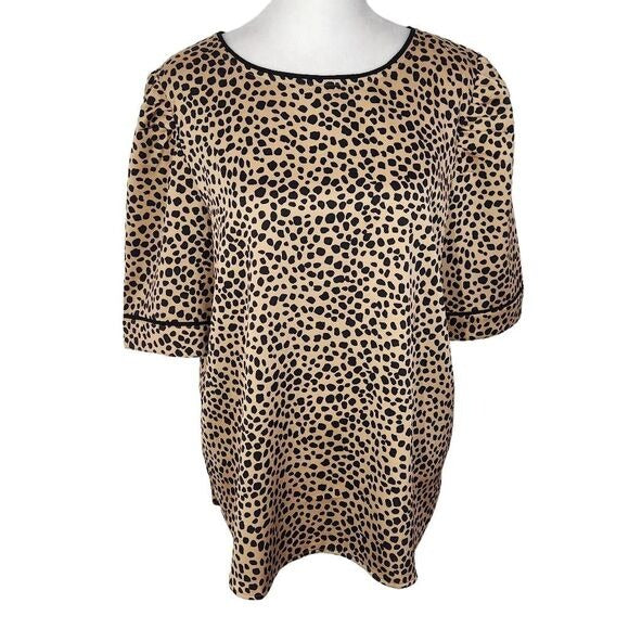 Loft Leopard Print Puffy Sleeve Blouse Size Large Tan and Black Leopard Top
