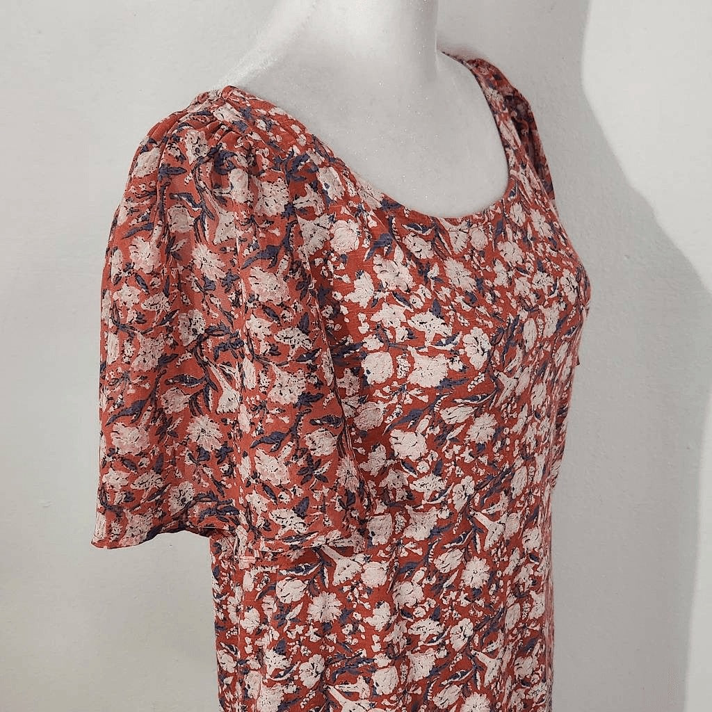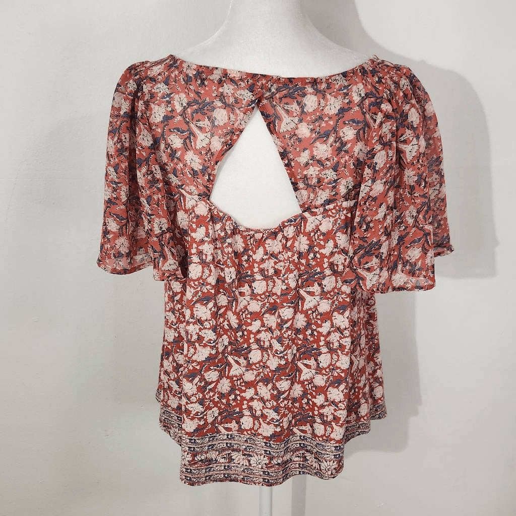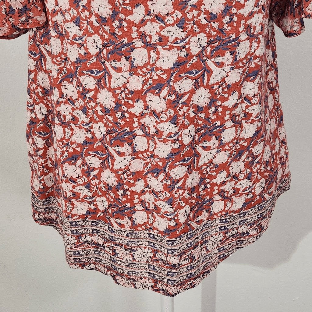Lucky Brand Red Floral Print Boho Top Size Small Red Floral Top