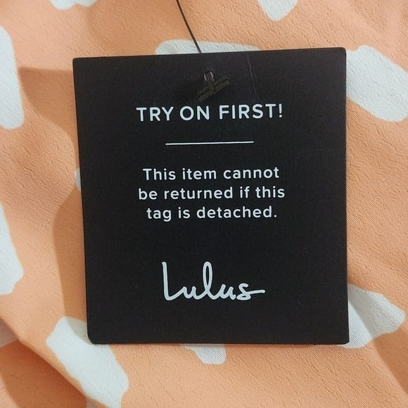 Lulus Inez Peach and White Print Tie-Front Romper. Strapless short romper features lining and a tie detail in the front. The color is an orange-peachy shade.