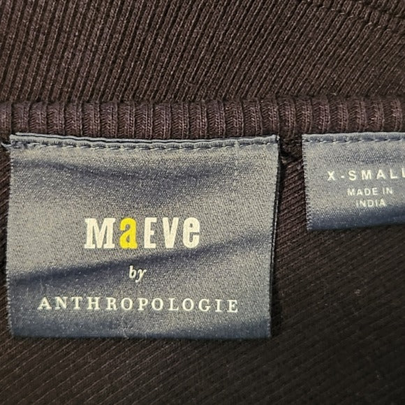 Maeve Black Ribbed Knit Top with Puffy Sleeves Size XS