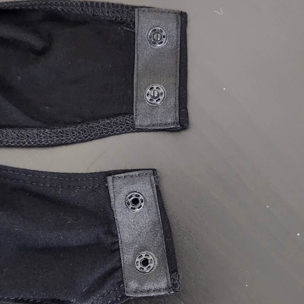 Mango Pop black bodysuit with two snaps, lightweight fabric, and long sleeves.