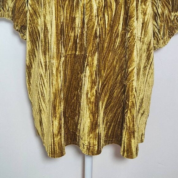 Maurices Dark Gold Crushed Velvet Top with Puffy Sleeves Size Large