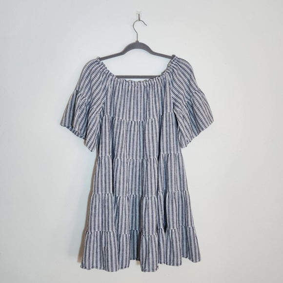 Max Studio Navy and White Stripe Tiered Mini Dress Size XL
