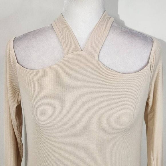 Michael Lauren Cream Ribbed Knit Cutout Top Size Small